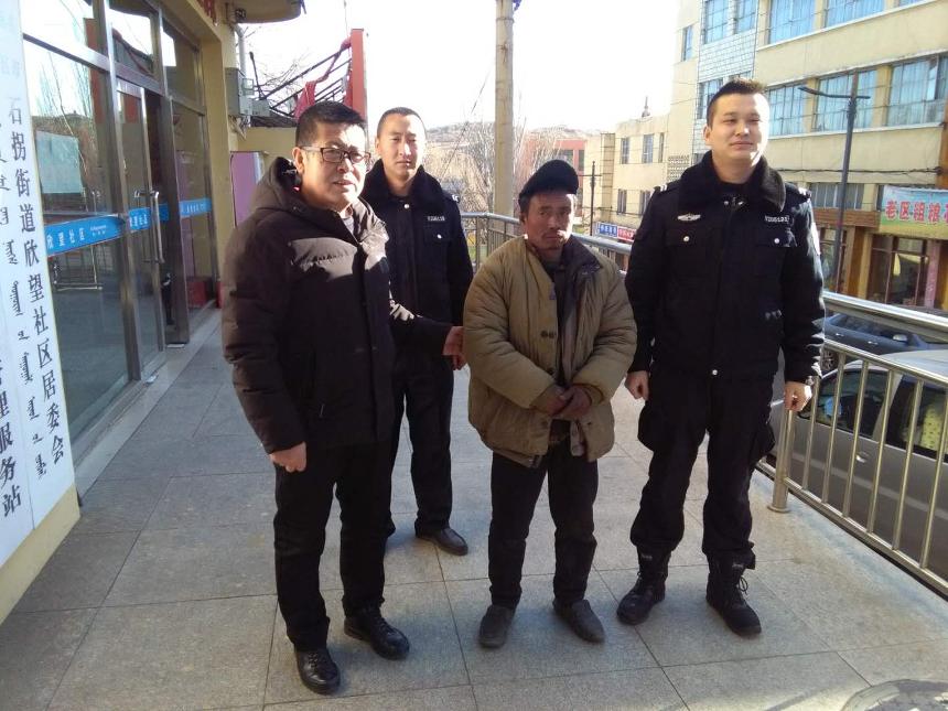 石拐区民政局工作人员第一时间赶往现场了解情况。该名流浪人员年龄大约50周岁,男,语言表达不清。在石拐街道办公场所,民政局工作人员与他聊天说话,进行心理疏导,待他情绪稳定后,说自己是包头市土右旗人,但具体地址说不清。民政局工作人员经过与土右旗民政局联系得知该流浪人员确是包头市土右旗北只图北街人,姓名为赵忠喜,略有智障。该名流浪人员一直与他的父亲生活,父亲的年龄已经80多岁,病卧在床,父子两人属于土右旗的低保家庭。工作人员又与他二哥取得联系。他二哥正在家照顾老人,没法来接他。